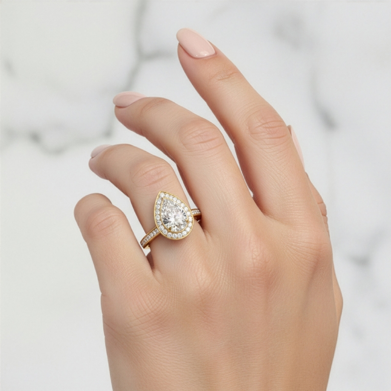 style Engagement Ring, center is Pear shape Diamond Report by IGI, D Color & VS1 clarity, Made in 14k Yellow Gold (2.05 ct. tw.)