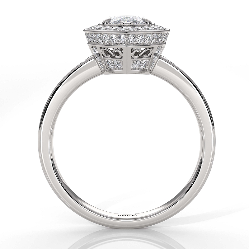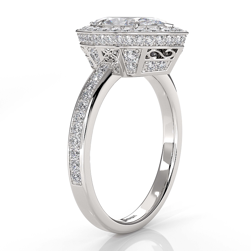 1.05Ct Diamond Engagement Ring 18k White Gold Princess Semi Mount Halo.