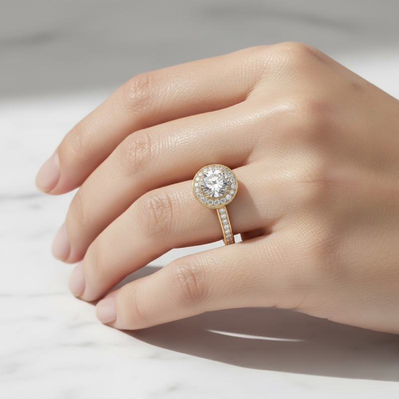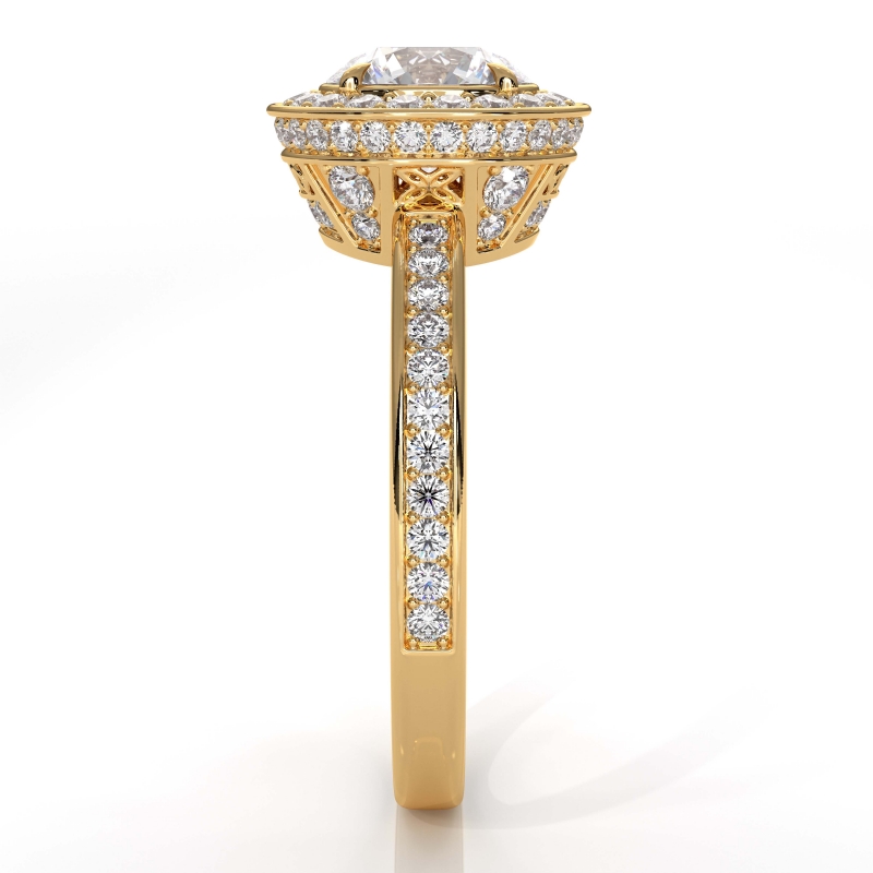style Engagement Ring, center is Round shape Diamond Report by IGI, D Color & VS1 clarity, Made in 18k Yellow Gold (2.09 ct. tw.)
