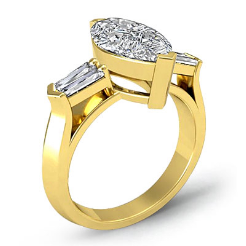 Baguette Round Diamond 3 Stone Engagement Ring Setting 14k Yellow Gold 0.5Ct.