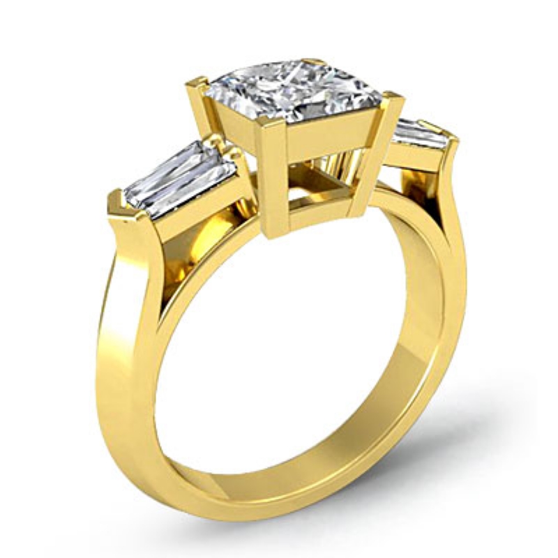 Baguette Round Diamond 3 Stone Engagement Ring Setting 14k Yellow Gold 0.5Ct.