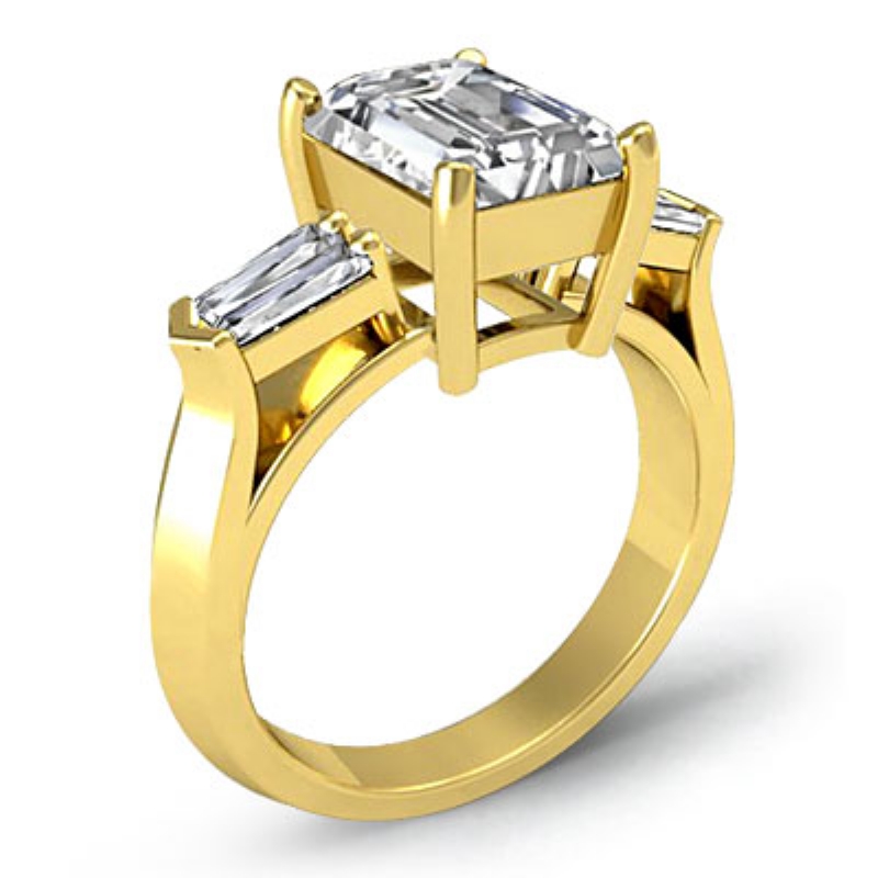 Baguette Round Diamond 3 Stone Engagement Ring Setting 14k Yellow Gold 0.5Ct.