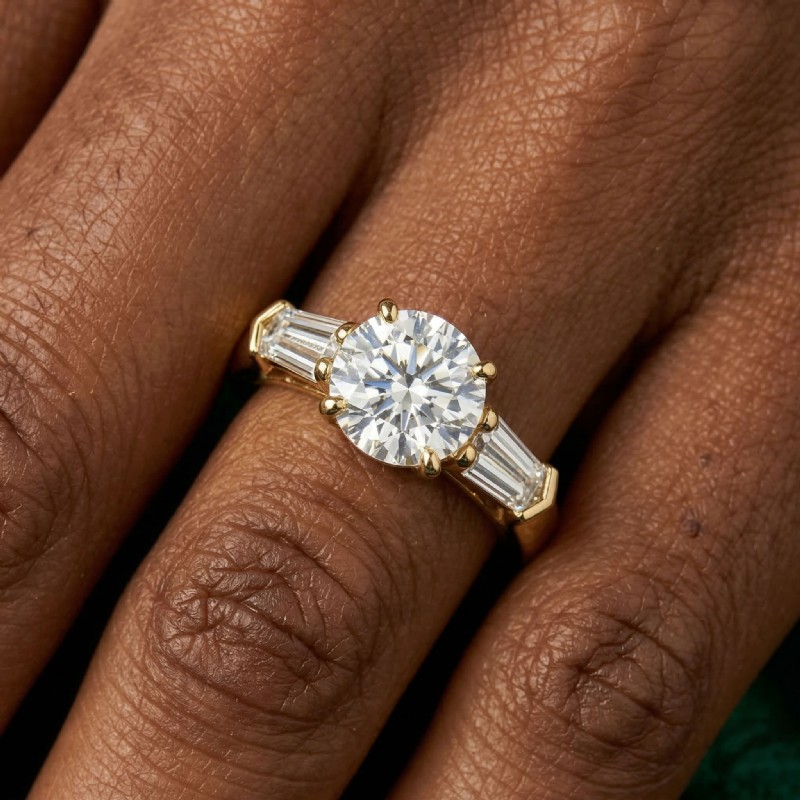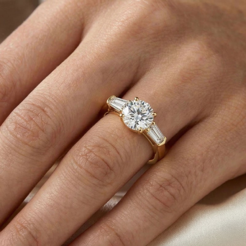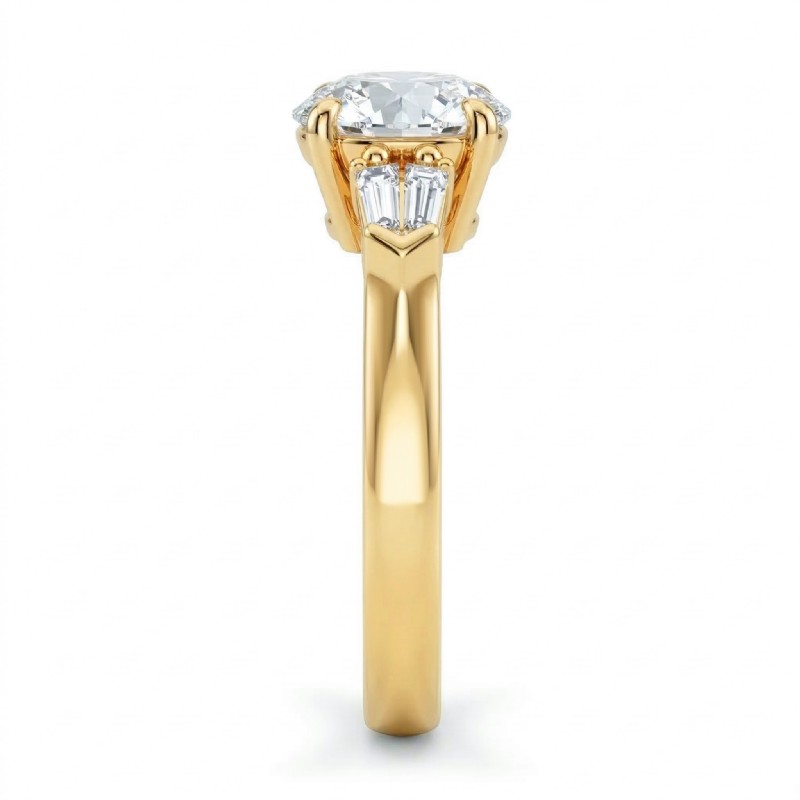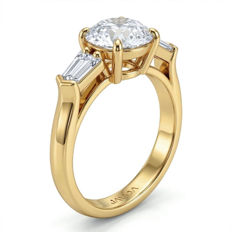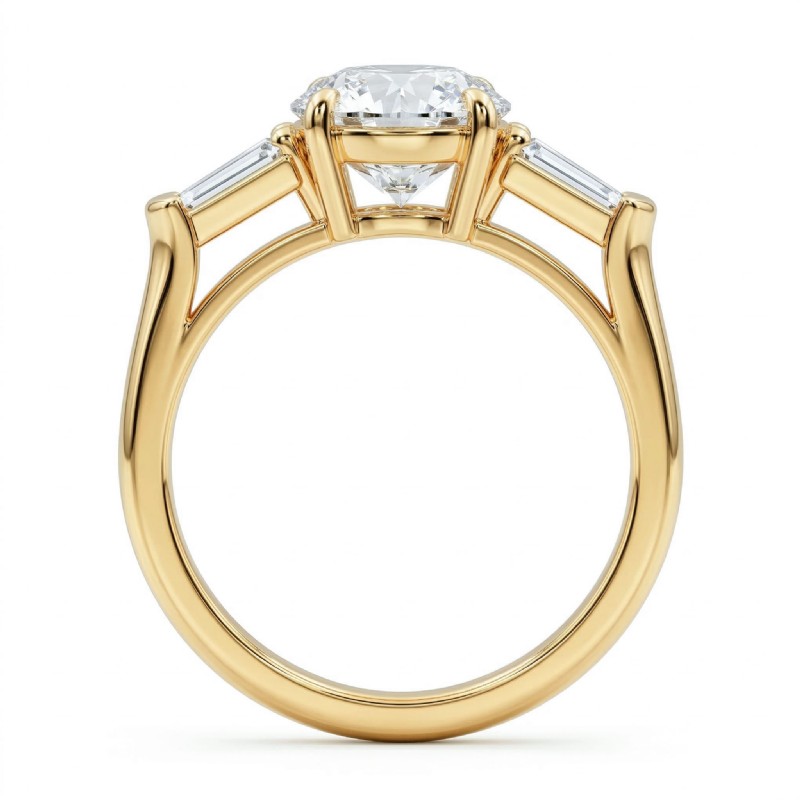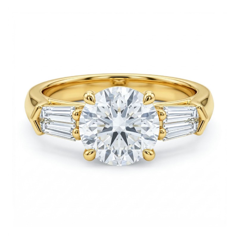 Baguette Round Diamond 3 Stone Engagement Ring Setting 18k Yellow Gold 0.5Ct.