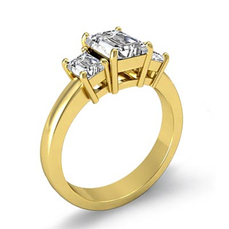 3 Stone Diamond Engagement Emerald Semi Mount Ring 14k Yellow Gold 0.5Ct.