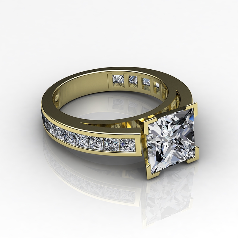 1.2Ct Princess Diamond Engagement Ring Channel 18k Yellow Gold Semi Mount.