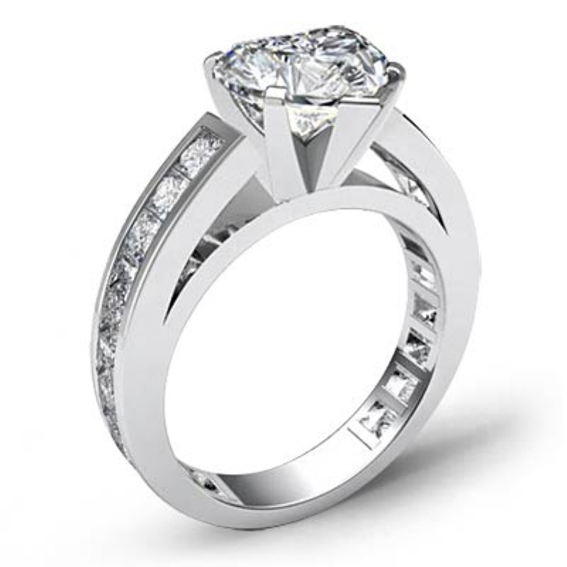 1.2Ct Princess Diamond Engagement Ring Channel Platinum 950 Semi Mount.