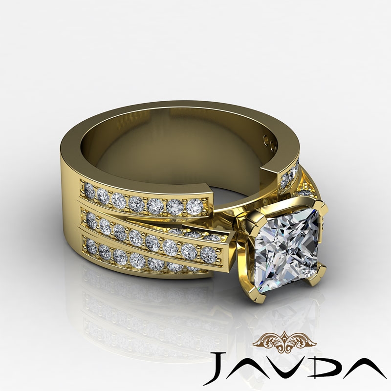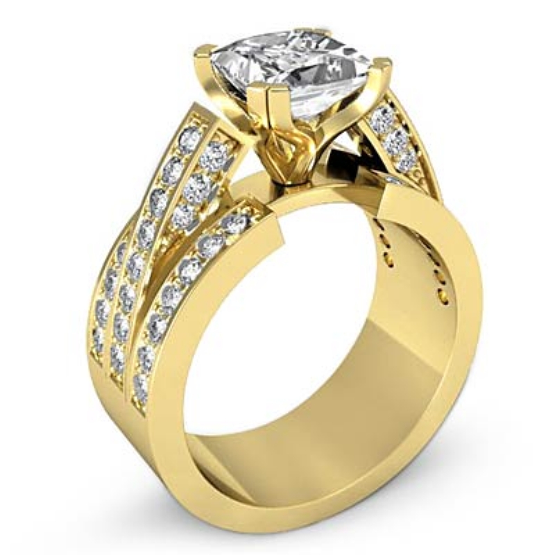 1.25Ct Princess Diamond Semi Mount Engagement Ring 14k Yellow Gold Pave - javda.com