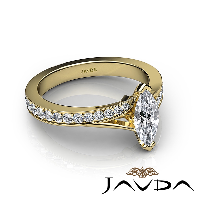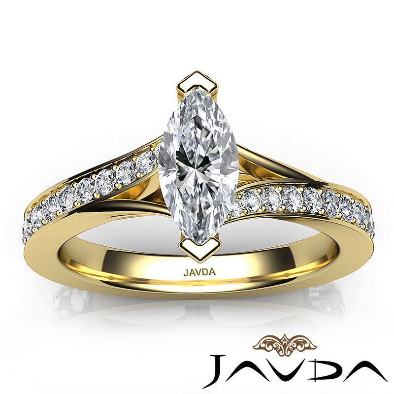 Marquise Diamond Engagement Pave Setting Semi Mount Ring 18k Yellow Gold 0.35Ct - javda.com