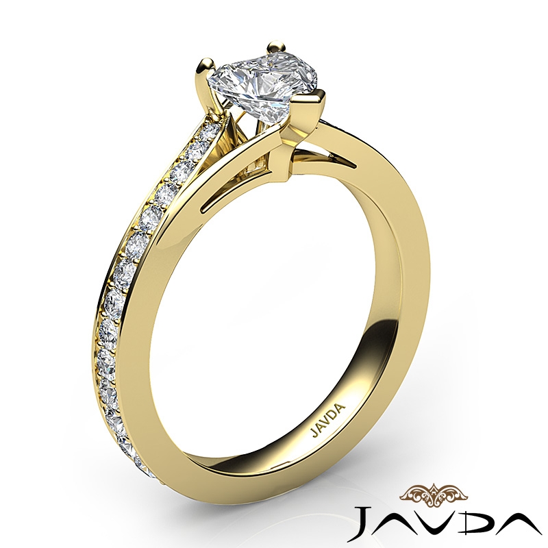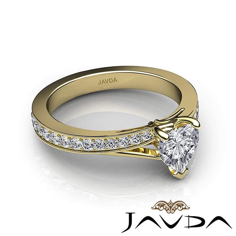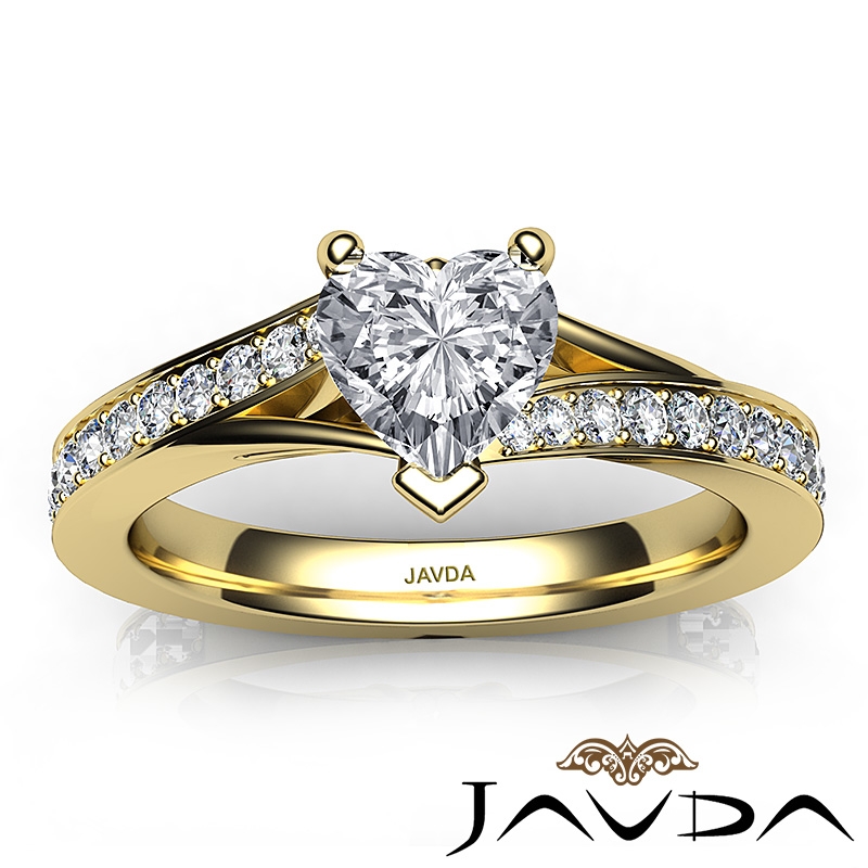 Pave Setting Side Stone style Engagement Ring, center is Heart shape Diamond Report by GIA, H Color & VS2 clarity, Made in 14k Yellow Gold (0.89 ct. tw.)