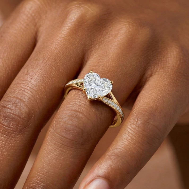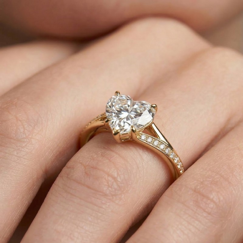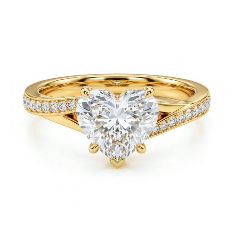 style Engagement Ring, center is Heart shape Diamond Report by IGI, E Color & VS1 clarity, Made in 18k Yellow Gold (1.45 ct. tw.)
