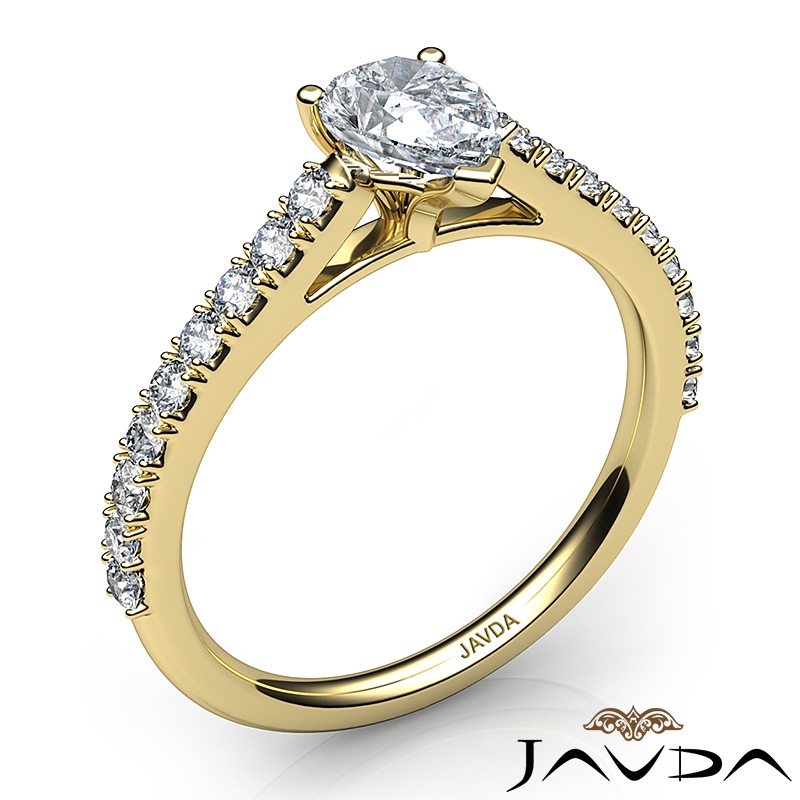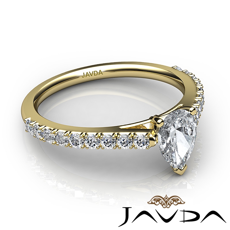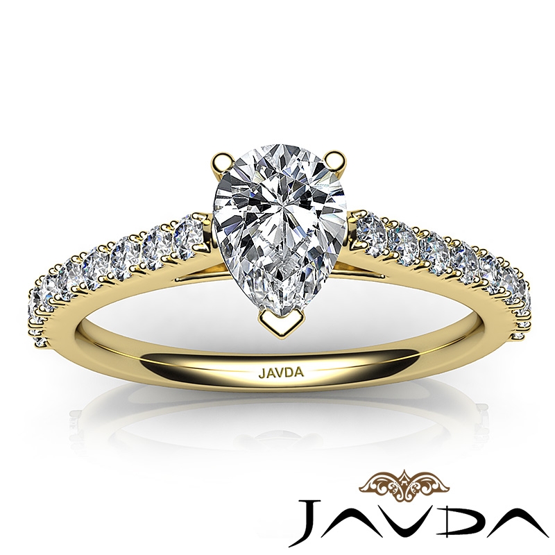 style Engagement Ring, center is Pear shape Diamond Report by GIA, D Color & VS1 clarity, Made in 14k Yellow Gold (0.89 ct. tw.)