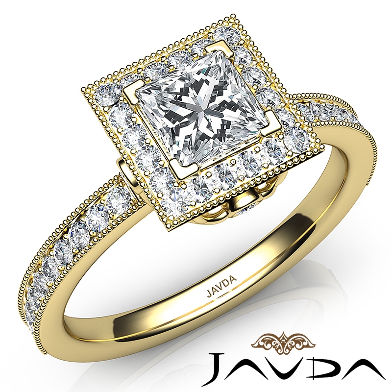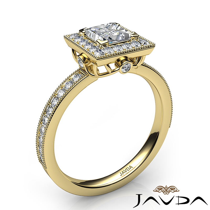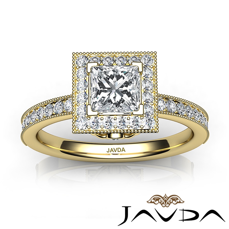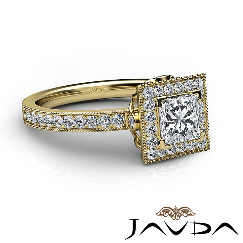 Halo Pave Set Diamond Engagement 18k Yellow Gold Princess Semi Mount Ring 0.5Ct - javda.com