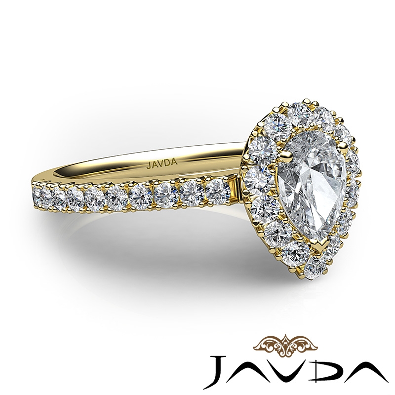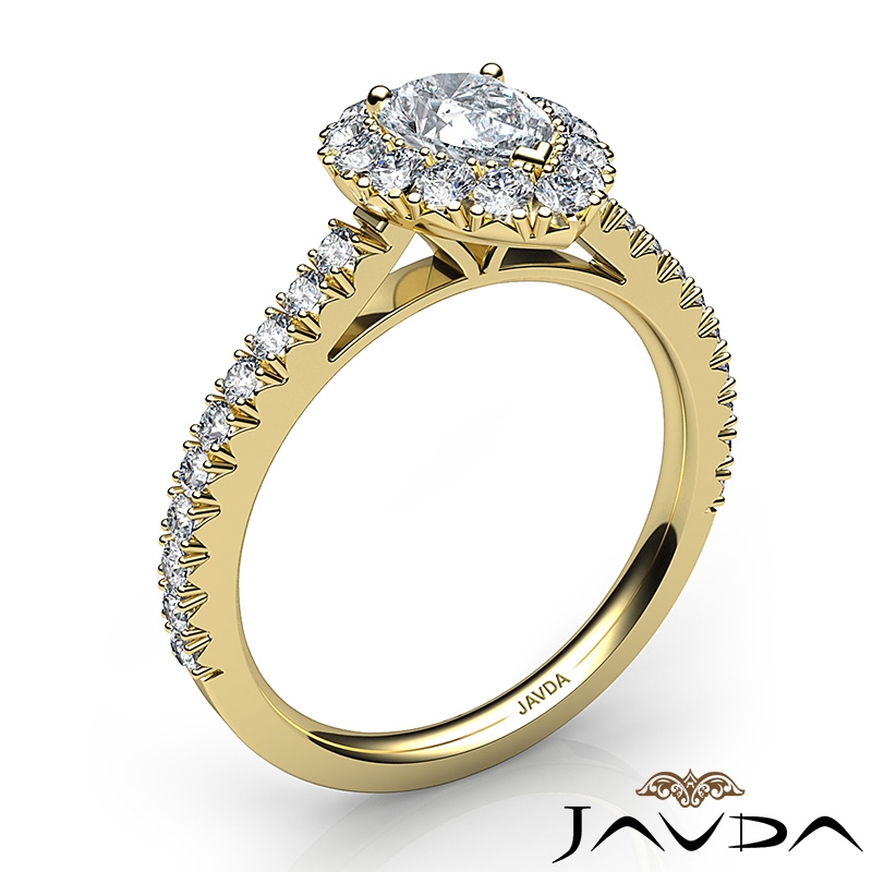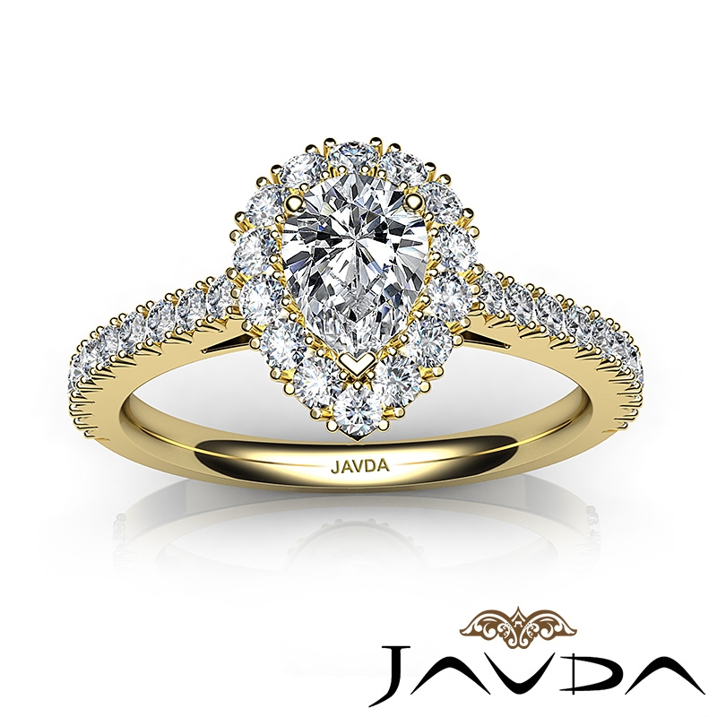French Cut Pave Set Diamond Engagement Pear Semi Mount Ring 14k Yellow Gold 1Ct.