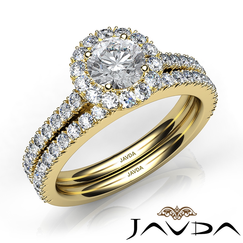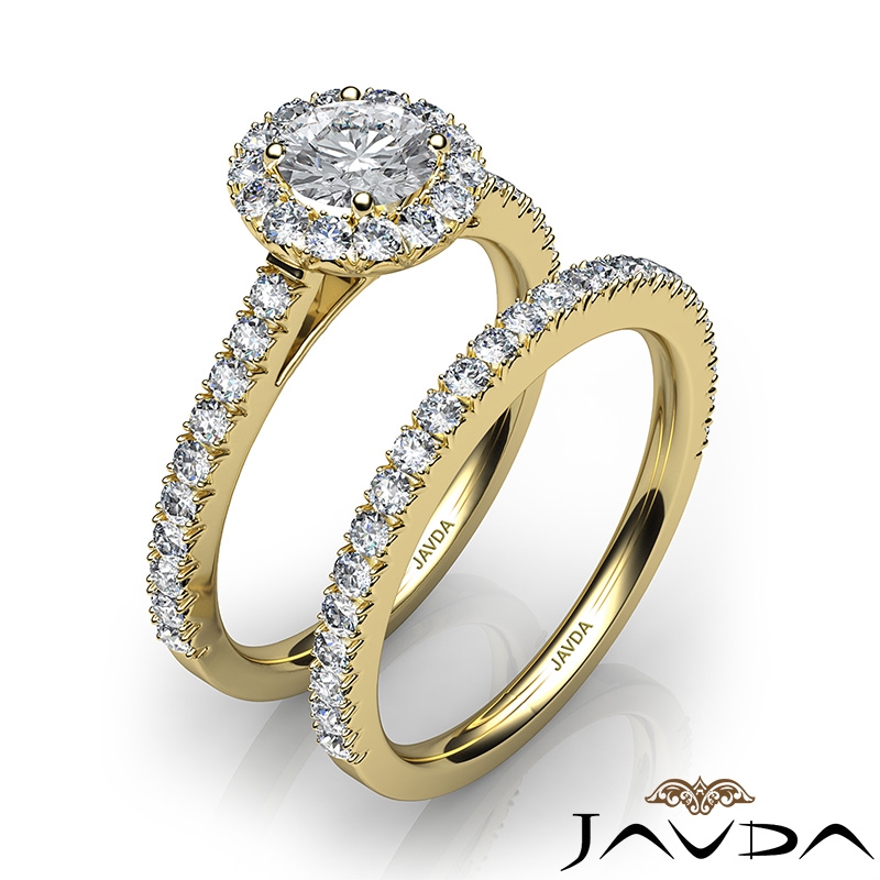 French V Cut Pave Diamond Engagement Ring Round Bridal Sets 18k Yellow Gold 1.5Ct.