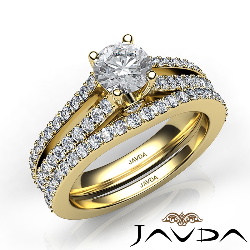 Split Shank Diamond Engagement Ring Round Bridal Set 18k Yellow Gold Semi Mount 1.1Ct.