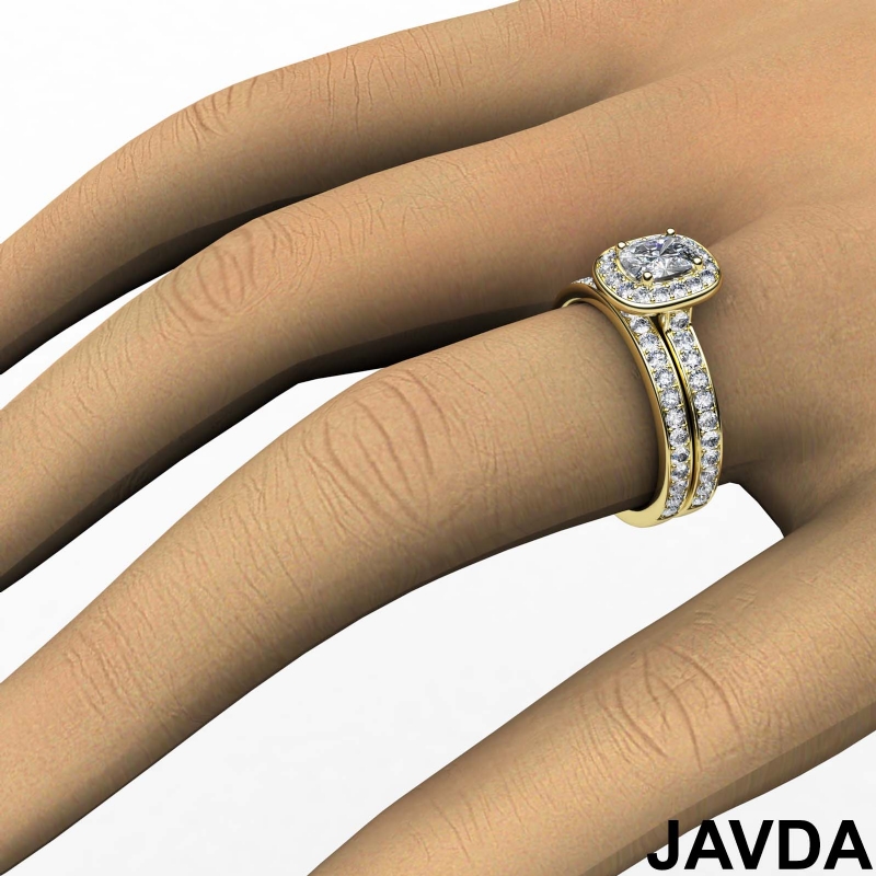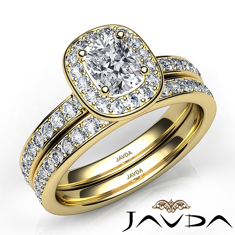 Cushion Halo Diamond Semi Mount Engagement Ring Bridal Set 14k Yellow Gold 0.95Ct.