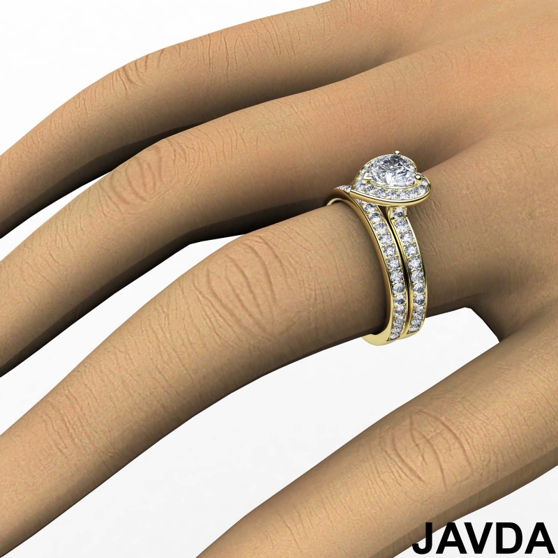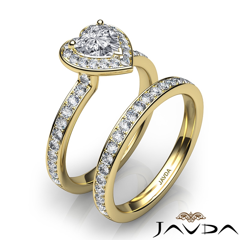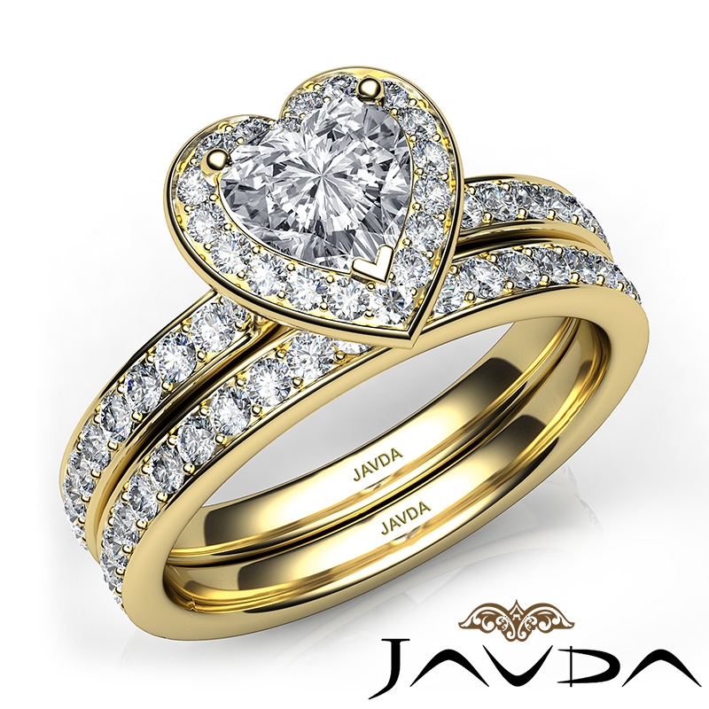Heart Halo Diamond Semi Mount Engagement Ring Bridal Set 14k Yellow Gold 0.95Ct.