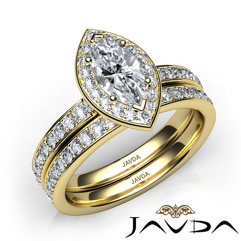 Framed Micro Pave Bridal Set style Engagement Ring, center is Marquise shape Diamond Report by GIA, F Color & VVS2 clarity, Made in 14k Yellow Gold (1.95 ct. tw.)