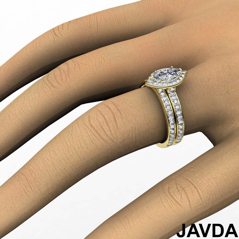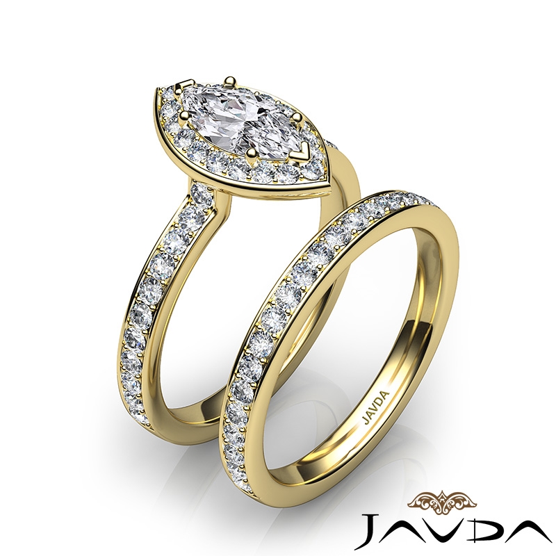Marquise Halo Diamond SemiMount Engagement Ring Bridal Set 14k Yellow Gold 0.95Ct.