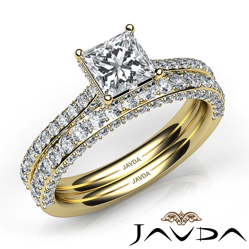 Pave Diamond Engagement Ring Princess Semi Mount Bridal Set 18k Yellow Gold 1.65Ct - javda.com