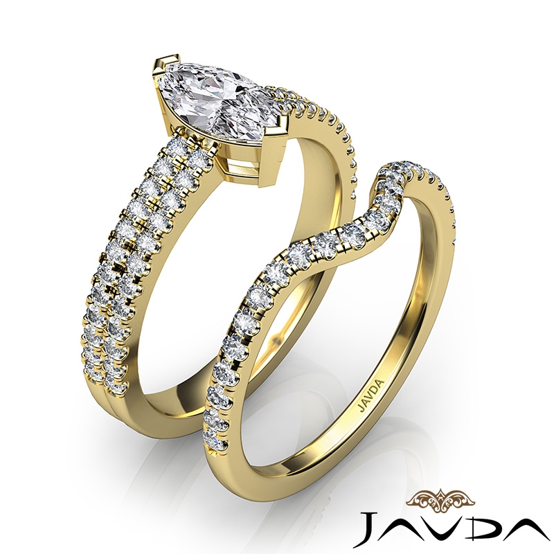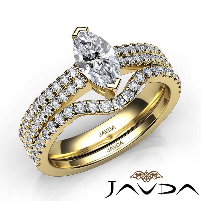 Diamond Engagement Ring Marquise Semi Mount U Cut Bridal Set 14k Yellow Gold 0.8Ct.