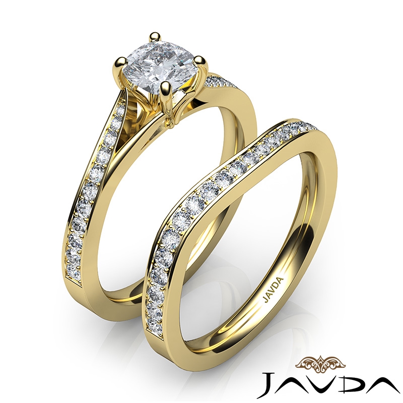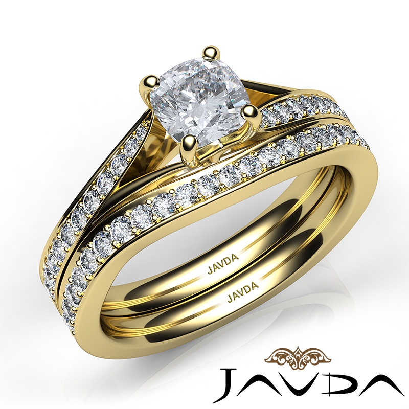Pave Diamond Engagement Ring Cushion SemiMount Bridal Set 18k Yellow Gold 0.9Ct.
