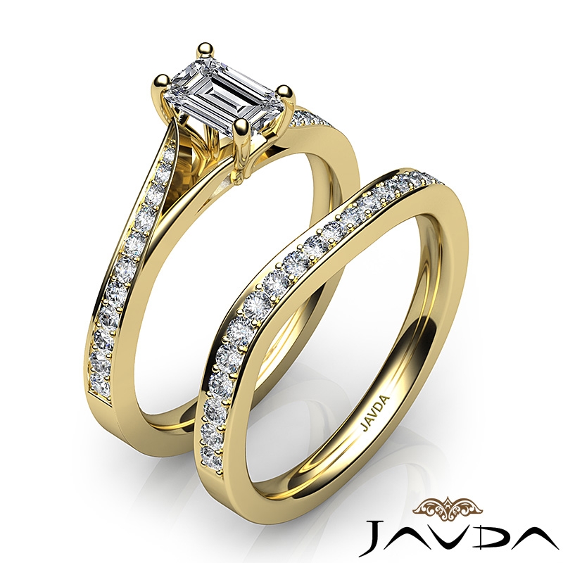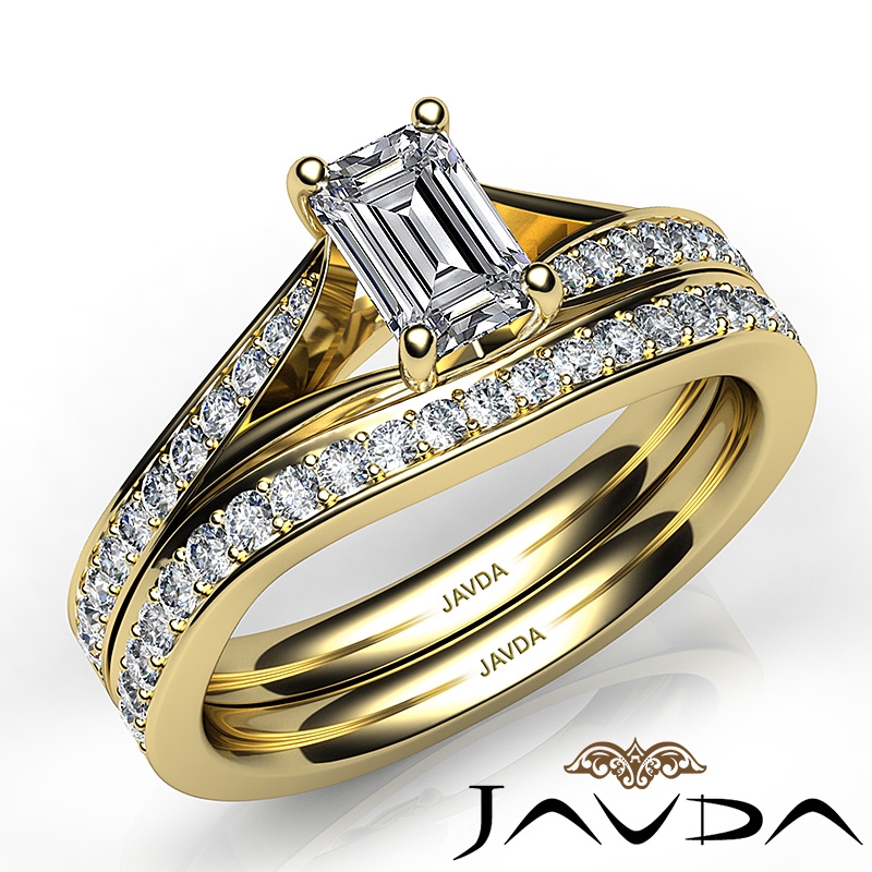 Pave Diamond Engagement Ring Emerald SemiMount Bridal Set 18k Yellow Gold 0.9Ct.
