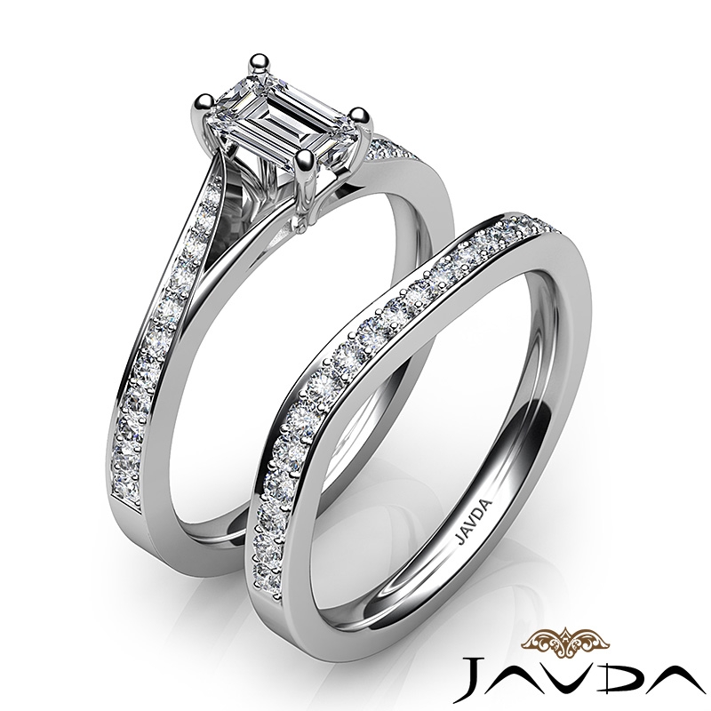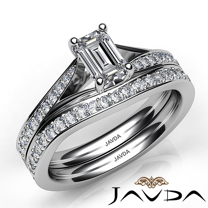 Pave Diamond Engagement Ring Emerald SemiMount Bridal Set Platinum 950 0.9Ct.