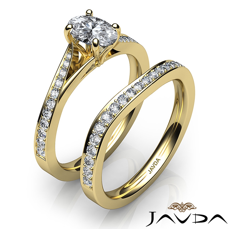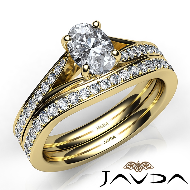 Pave Diamond Engagement Ring Oval Semi Mount Bridal Set 18k Yellow Gold 0.9Ct.