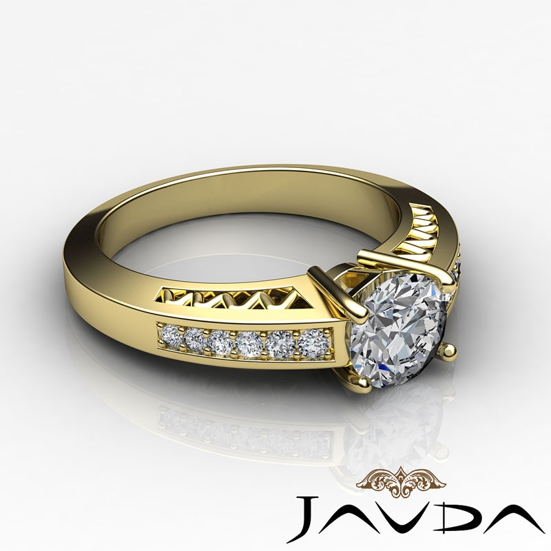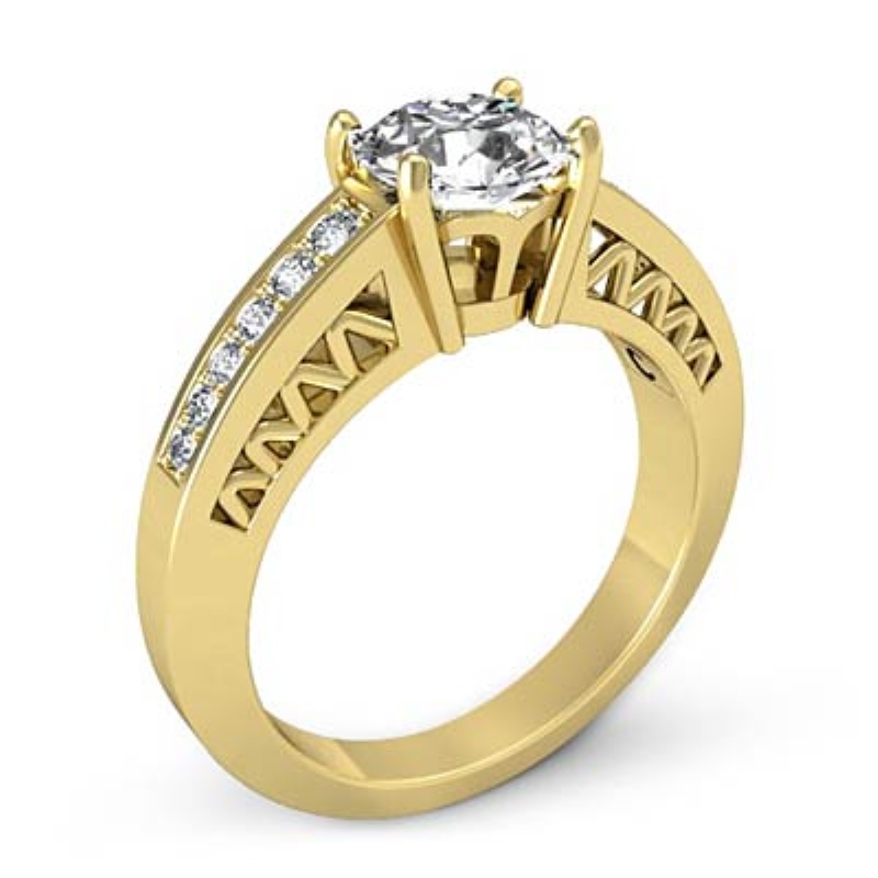 0.25Ct Round Diamond Engagement Ring Side Stone Setting 14k Yellow Gold.
