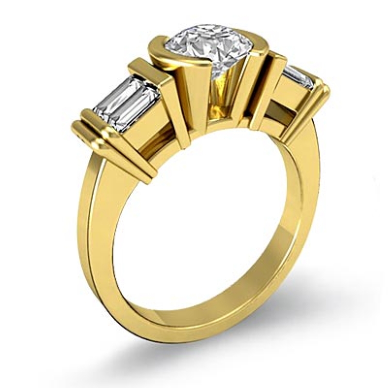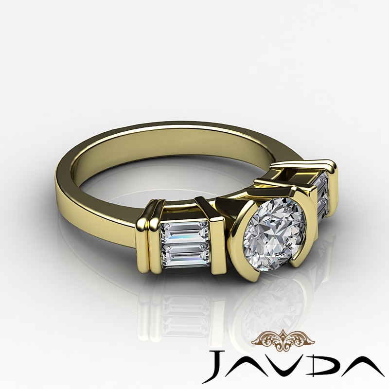 Baguette Round Diamond 3Stone Engagement Ring Setting 14k Yellow Gold 0.4Ct.