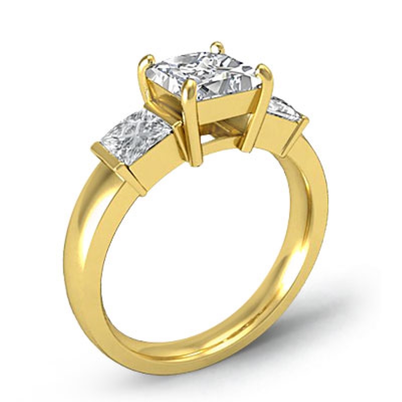 Princess Diamond 3 Stone Engagement Ring Semi Mount 14k Yellow Gold 0.6Ct - javda.com