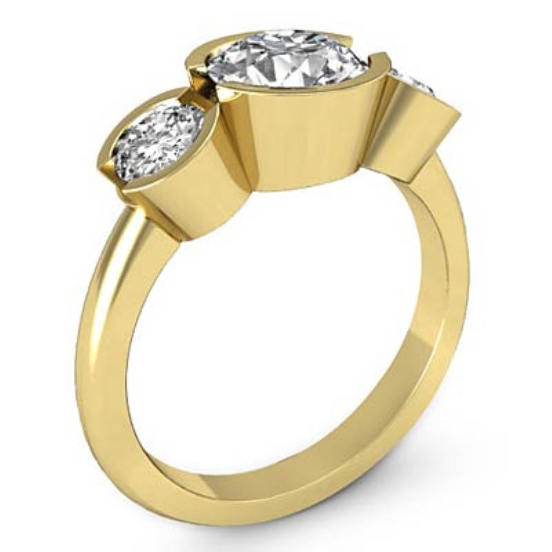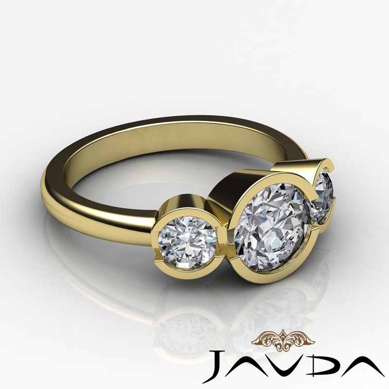 Round Diamond 3 Stone Engagement Ring Bezel Semi Mount 14k Yellow Gold 0.6Ct.
