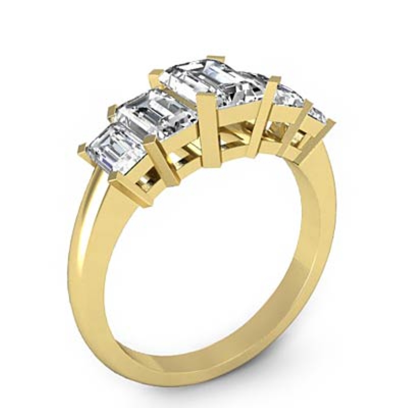 Emerald 5 Stone Diamond Engagement Ring 18k Yellow Gold Setting 1.5Ct - javda.com
