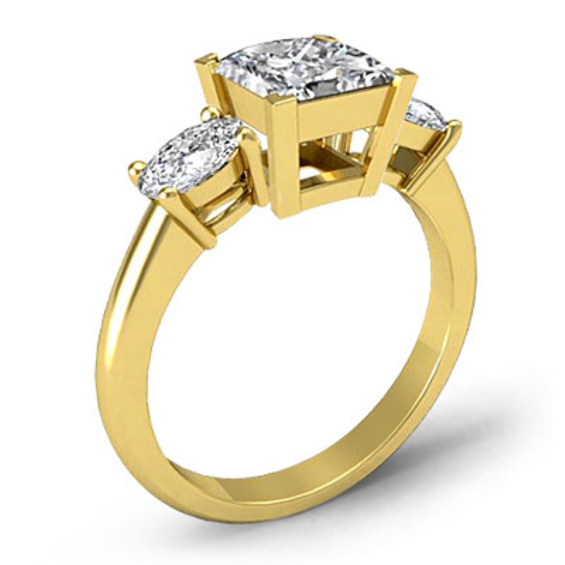 style Engagement Ring, center is Princess shape Diamond Report by GIA, J Color & VS1 clarity, Made in 18k Yellow Gold (1.43 ct. tw.)