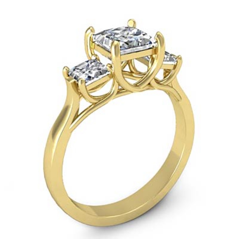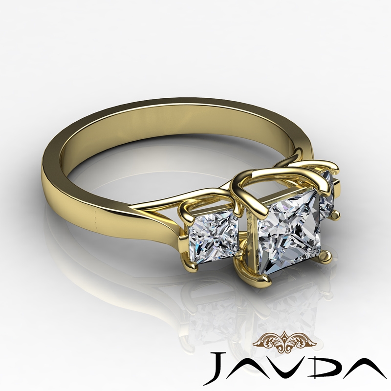 Diamond 3 Stone Engagement Ring 18k Yellow Gold Princess Semi Mount 0.6Ct.