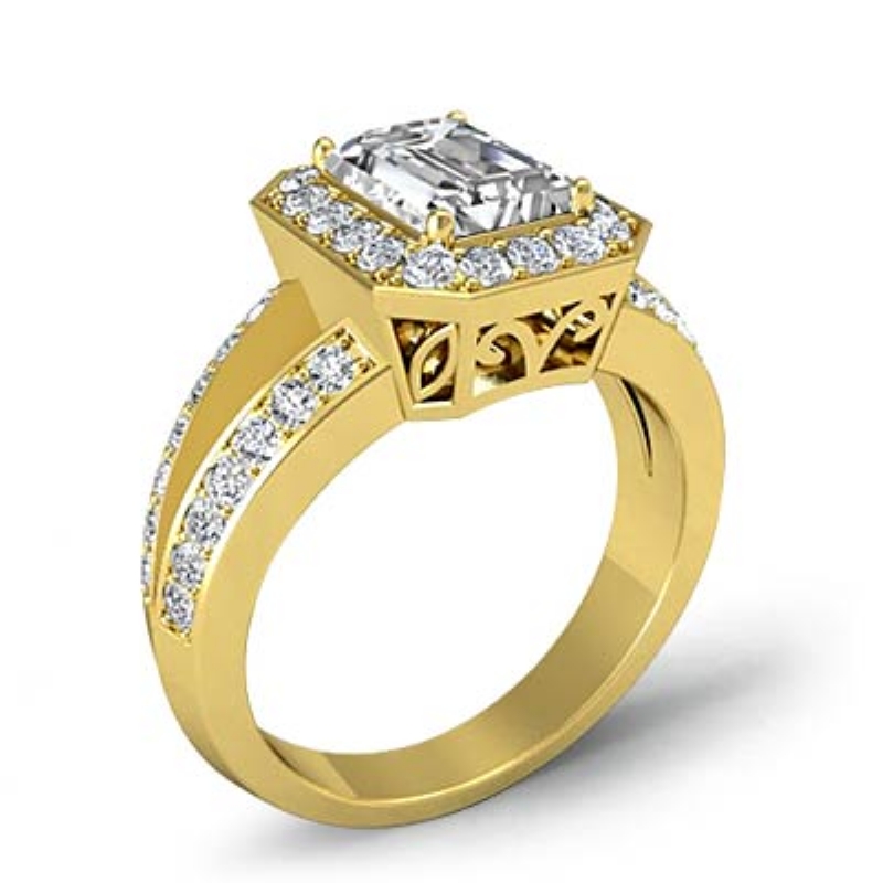 style Engagement Ring, center is Emerald shape Diamond Report by GIA, D Color & VVS1 clarity, Made in 14k Yellow Gold (1.1 ct. tw.)