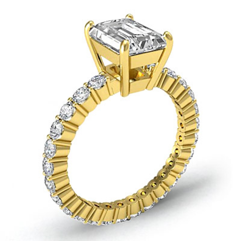0.8Ct Diamond Solitaire Emerald Semi Mount Prong Ring 14k Yellow Gold.
