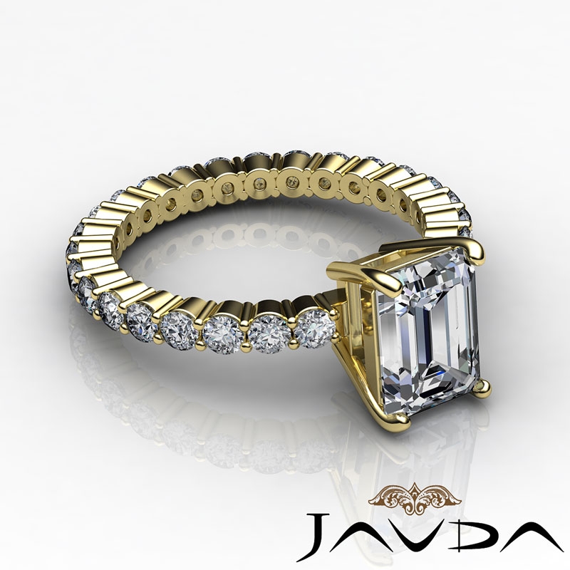 style Engagement Ring, center is Emerald shape Diamond Report by GIA, F Color & VS2 clarity, Made in 14k Yellow Gold (1.87 ct. tw.)