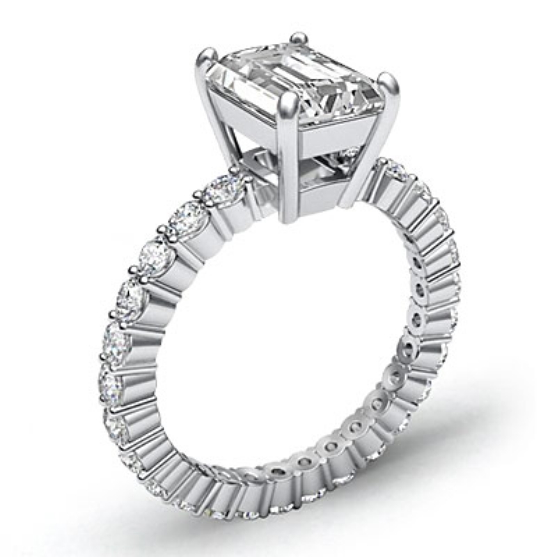 0.8Ct Diamond Solitaire Emerald Semi Mount Prong Ring Platinum 950.
