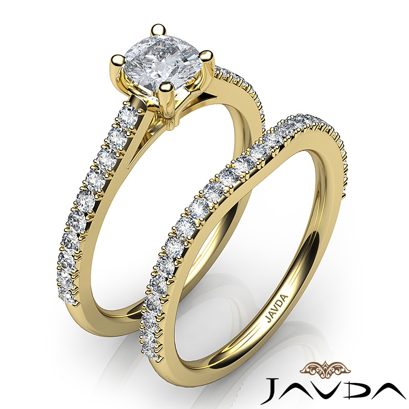 Diamond Cushion Cut Semi Mount Engagement Ring Bridal Set 18k Yellow Gold 0.8Ct.