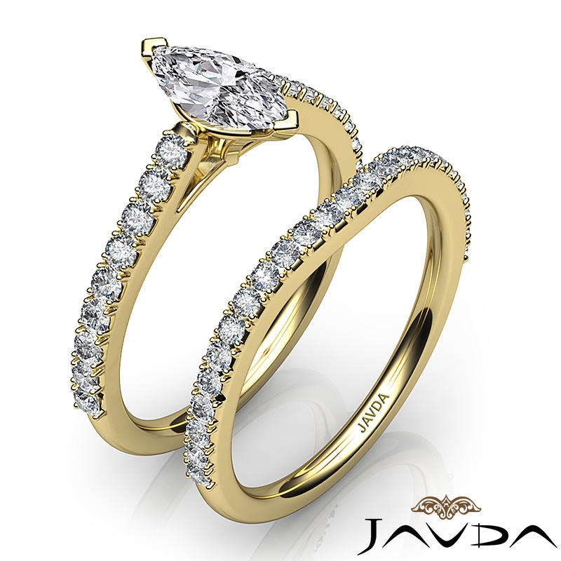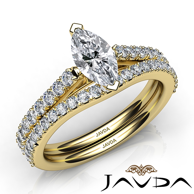 Prong Shank Bridal Set style Engagement Ring, center is Marquise shape Diamond Report by GIA, F Color & VVS2 clarity, Made in 14k Yellow Gold (1.8 ct. tw.)