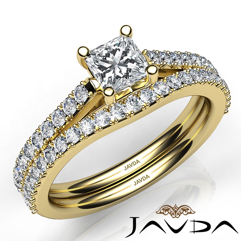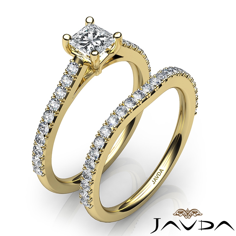 Princess Diamond Semi Mount Engagement Ring Bridal Set 14k Yellow Gold 0.8Ct.