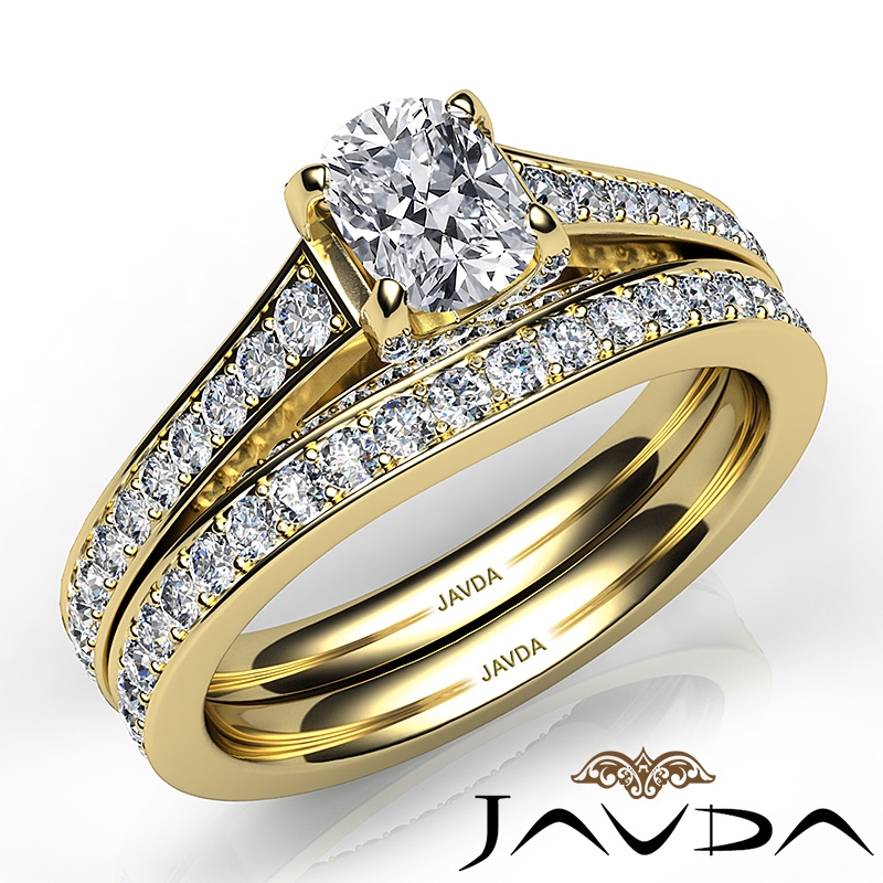 Cushion Diamond Engagement Semi Mount Ring Bridal Sets 14k Yellow Gold 1.25Ct.