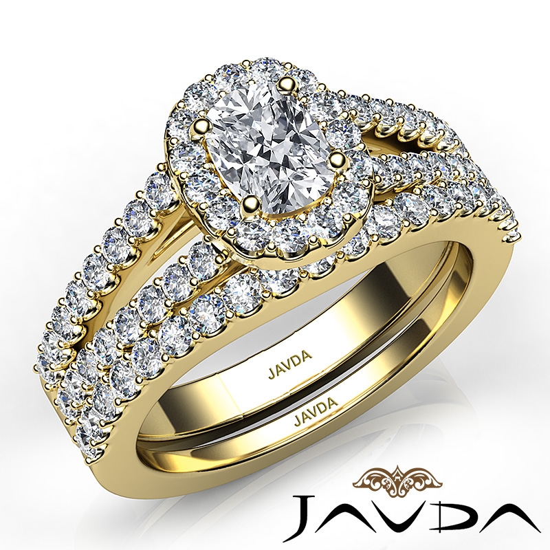 U Prong Diamond Engagement Semi Mount Ring Cushion Bridal Set 18k Yellow Gold 1.25Ct.