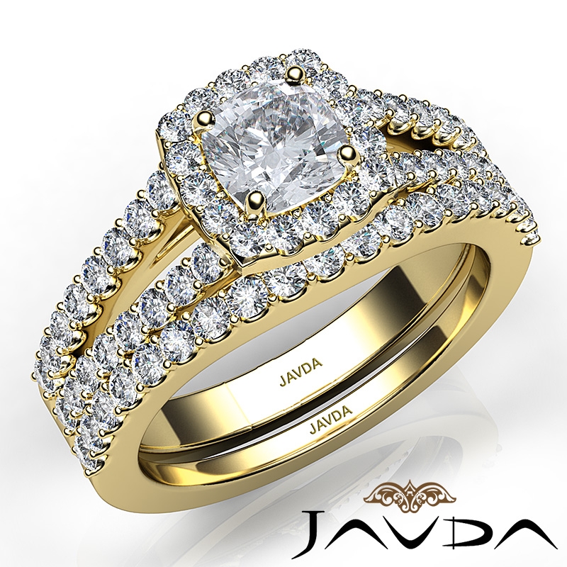 U Prong Diamond Engagement Cushion Semi Mount Ring Bridal Set 18k Yellow Gold 1.25Ct.