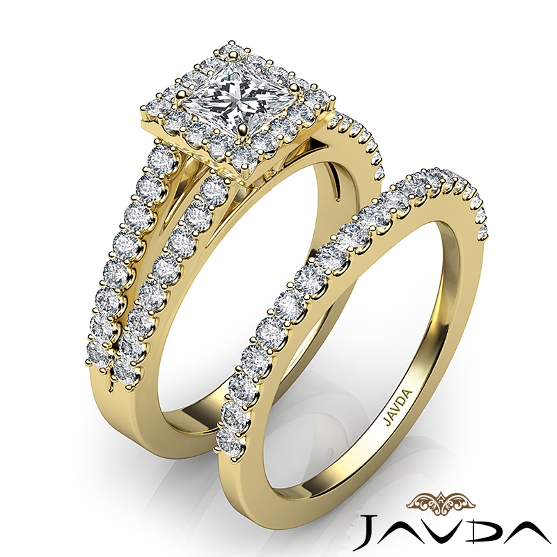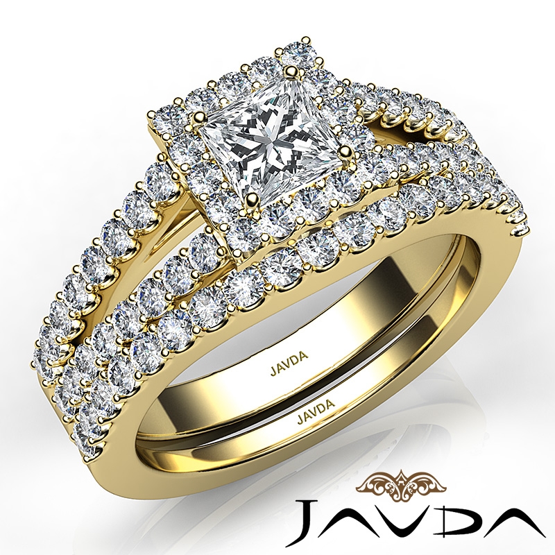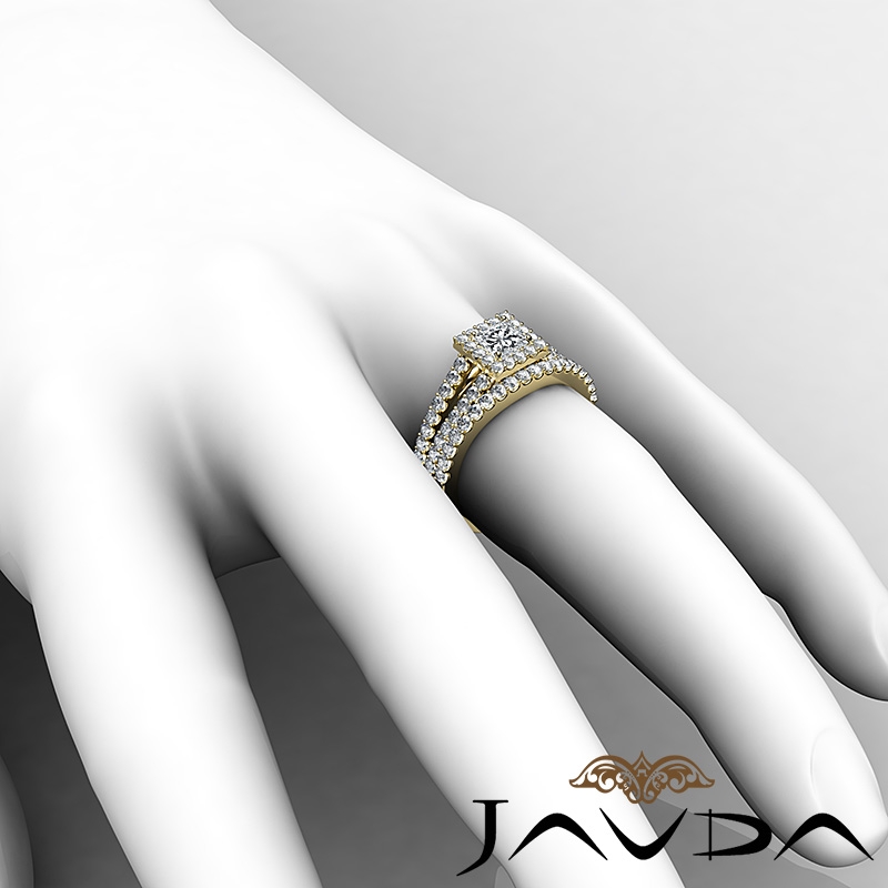 U Prong Diamond Engagement Semi Mount Ring Princess Bridal Set 14k Yellow Gold 1.25Ct.