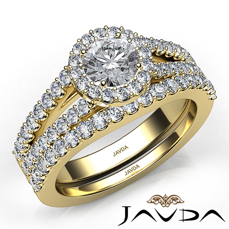 U Prong Diamond Engagement Semi Mount Ring Round Bridal Set 18k Yellow Gold 1.25Ct.