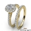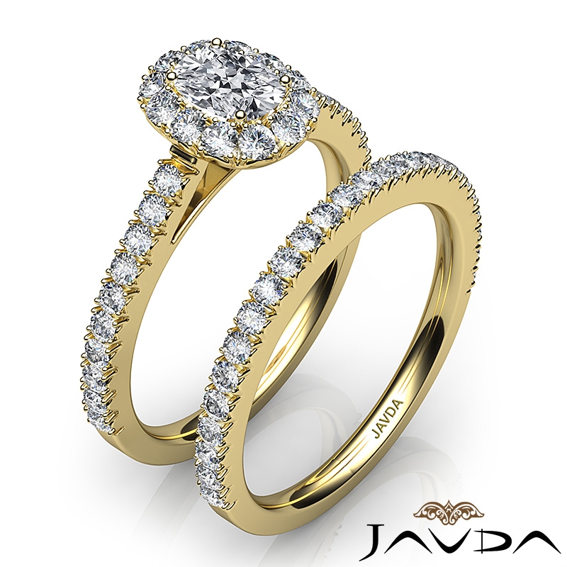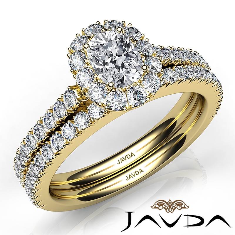 French V Cut Pave Diamond Engagement Ring Cushion Bridal Sets 14k Yellow Gold 1.5Ct.