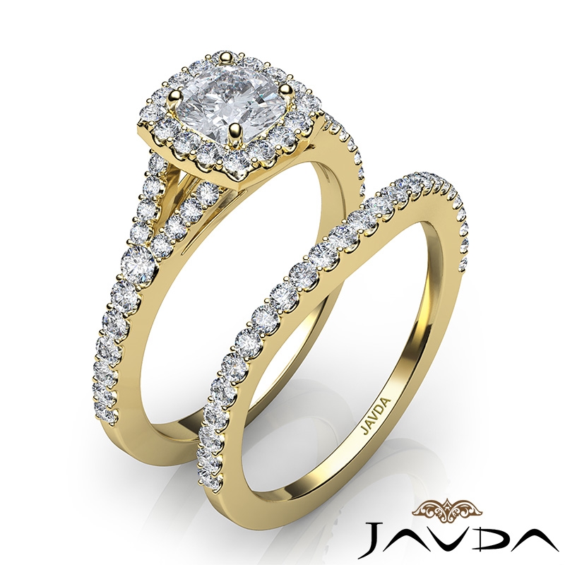U Prong Diamond Engagement Cushion Semi Mount Ring Bridal Set 14k Yellow Gold 0.8Ct.
